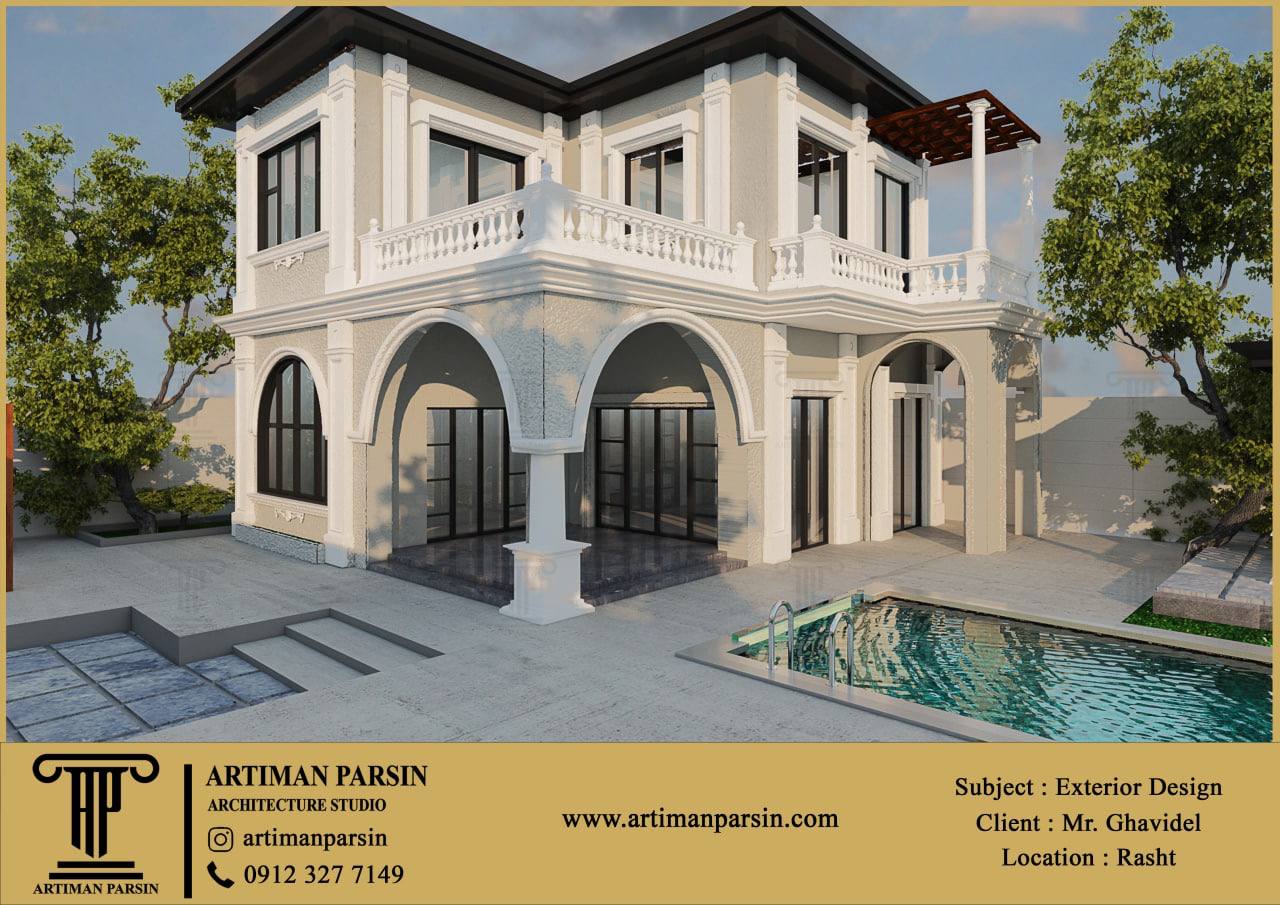 طراحی نما نئو کلاسیک رشت | طراحی فضای سبز رشت | باغ پرندگان